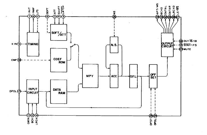 CXD1244 features: (1)built-in 4-timers/8-times sampling digital filter for 2 channels; (2)ripple within 0.00001dB; (3)attenuation within -100dB(24.1K); (4)noise shaping, attenuator; (5)soft muting, de-emphasis and a wide variety of built-in functions.